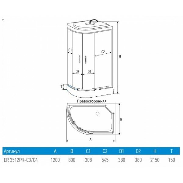 | Тип | душевая кабина правосторонняя |