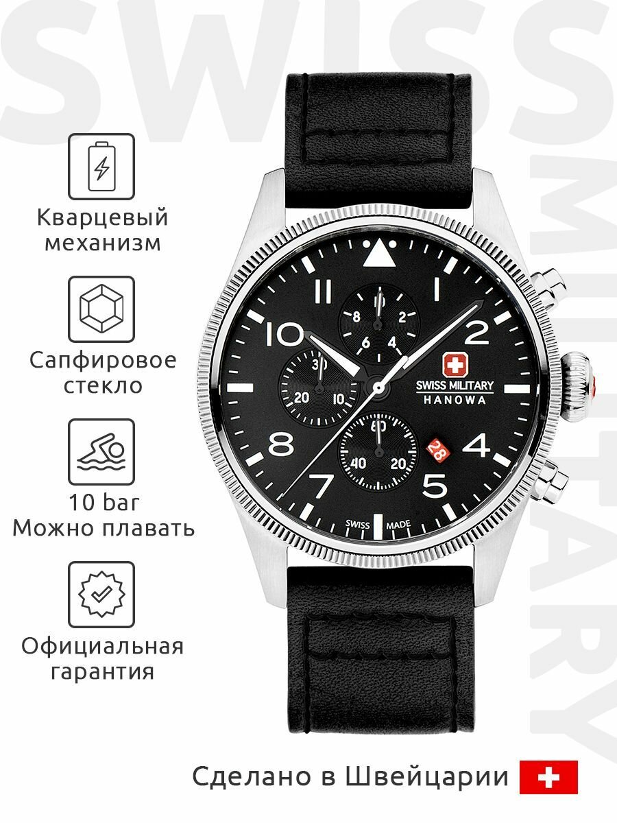 Наручные часы Swiss Military Hanowa Наручные часы Swiss Military Hanowa Air Thunderbolt Chrono, серебряный, черный