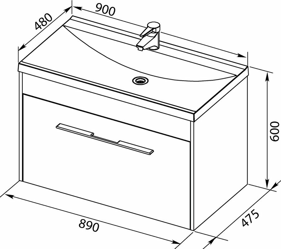 Тумба с раковиной AQUANET Августа 90 (ручка хром, раковина Нота 90) Белый
