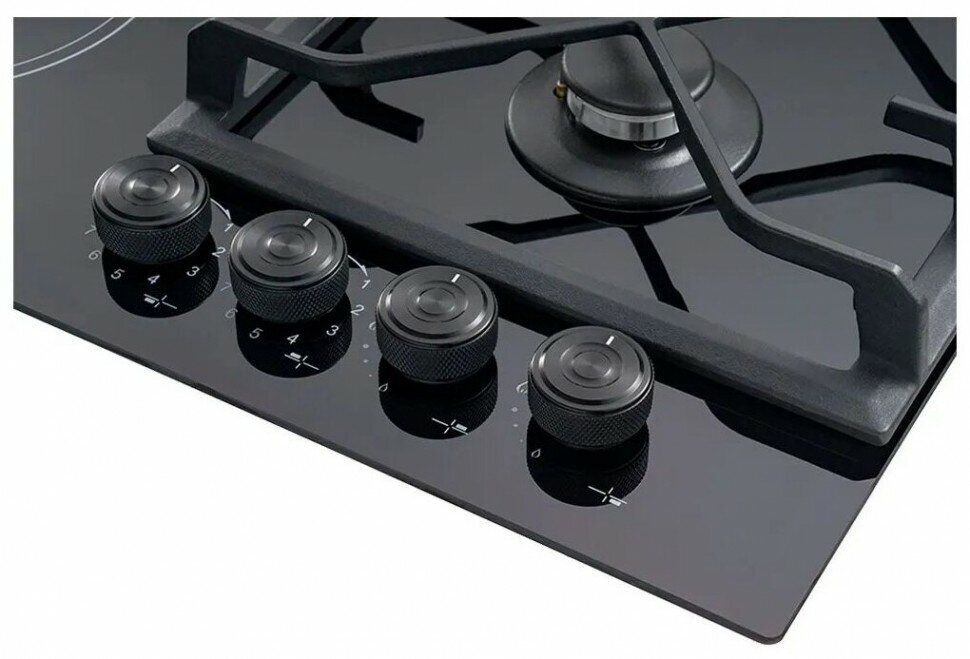 Варочная поверхность HIBERG VM 6020 B комбинированная, газоэлектрическая, стеклокерамика, электророзжиг, газ-контроль, черный