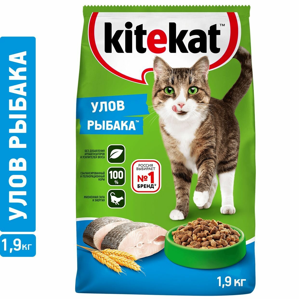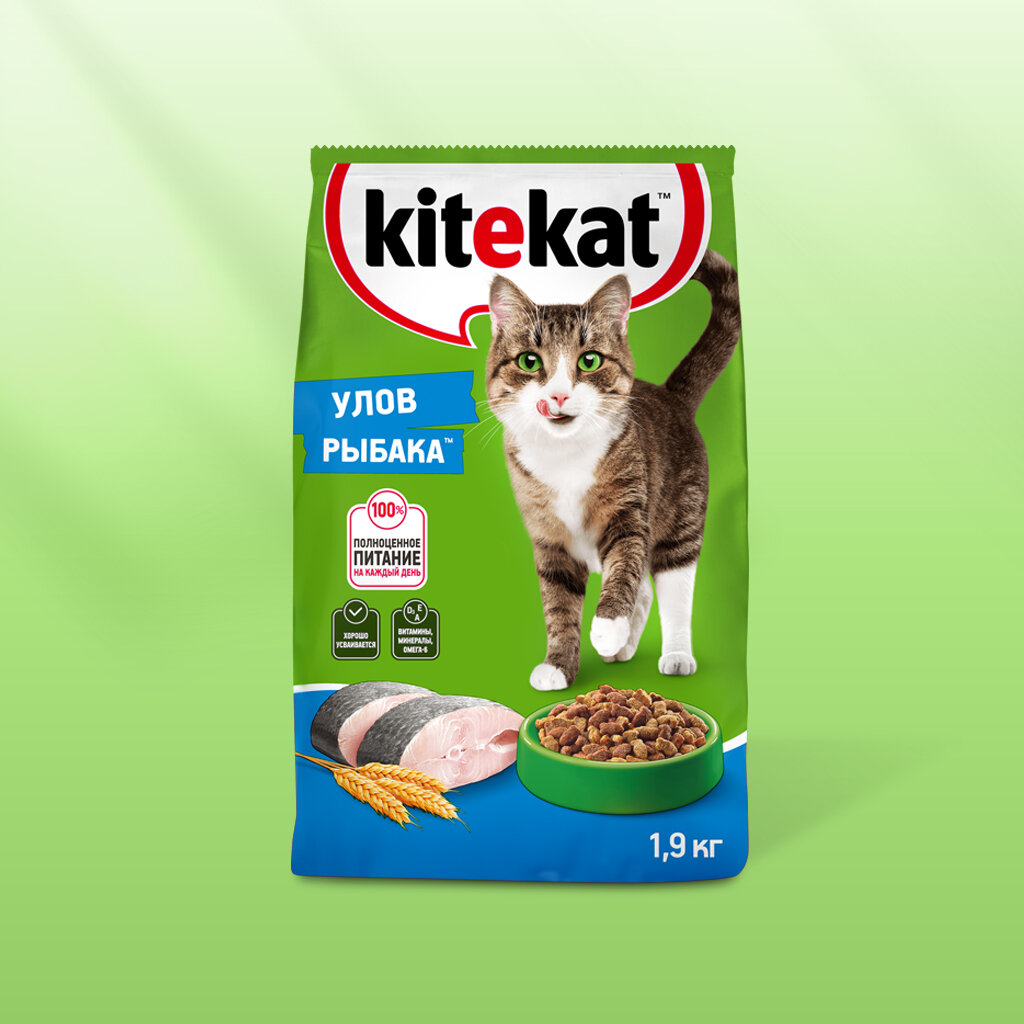 Kitekat корм для взрослых кошек, улов рыбака 1,9 кг