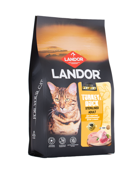 Купить LANDOR полнорационный сухой корм для стерилизованных котов и кошек с индейкой и уткой, 2кг