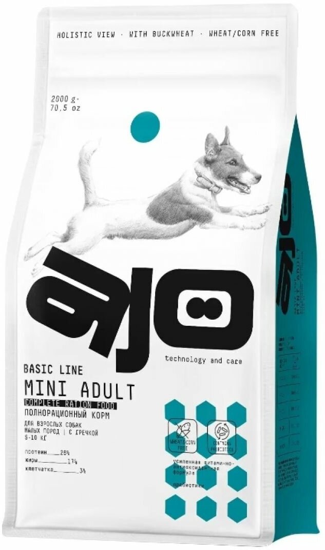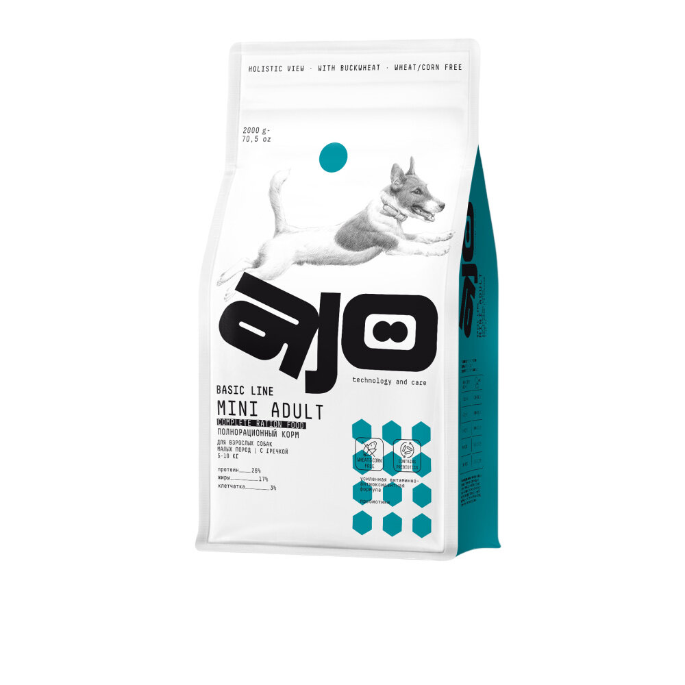 Сухой корм AJO Mini Adult с гречкой для взрослых собак малых пород 2 кг