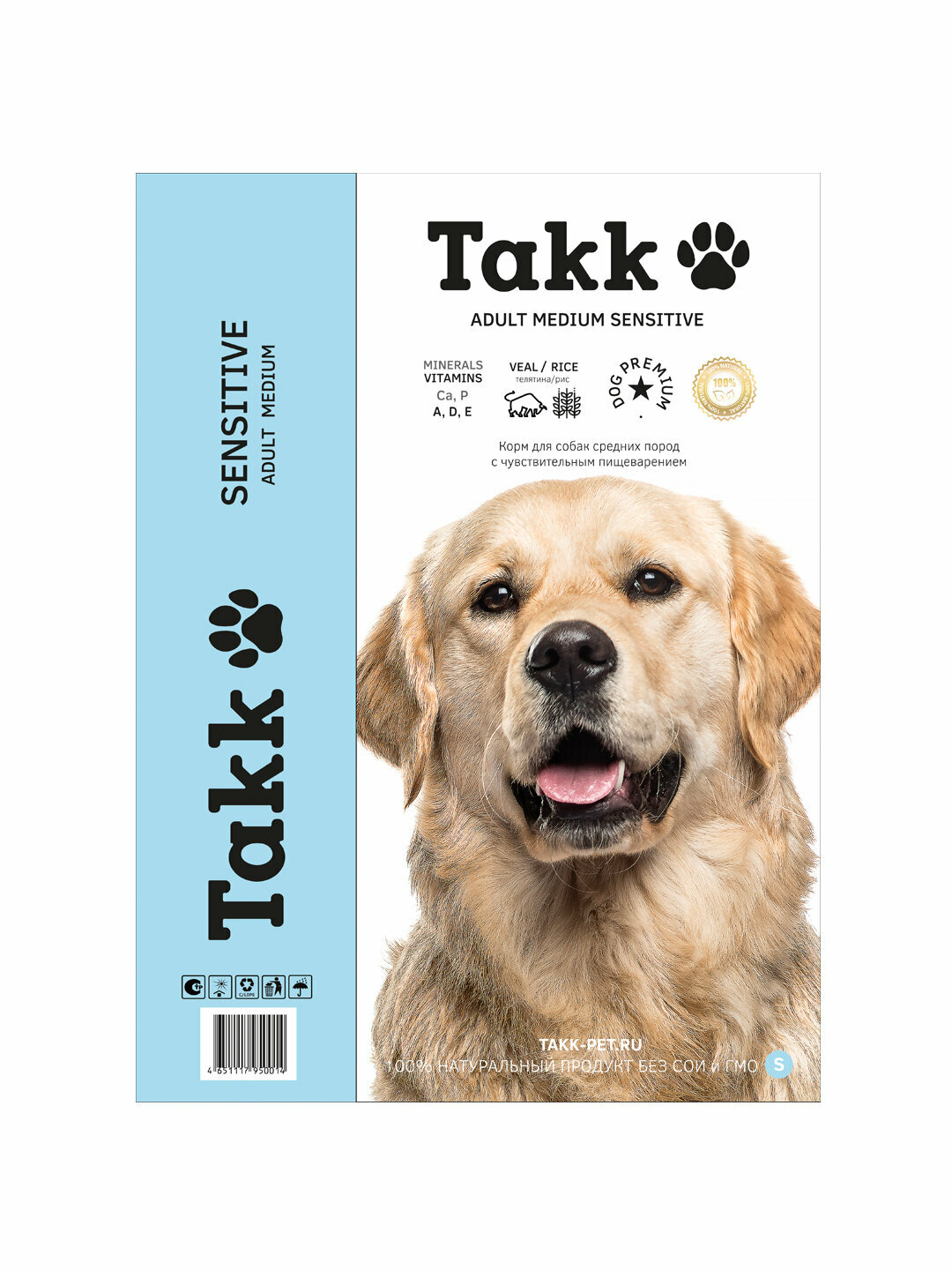 Купить Сухой корм Takk для взрослых собак средних пород с чувствительным пищеварением с телятиной и рисом 2кг