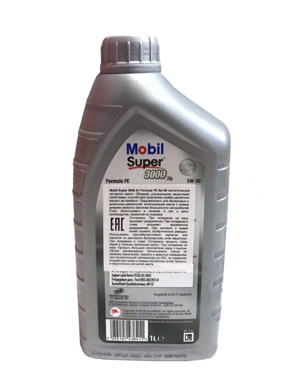MOBIL MOBIL 5W30 SUPER 3000 X1 FORMULA FE/1 Масло моторное синтетическое 1л - для легк. авто, API SN, ACEA A5/B5, FORD WSS-M2C913-C/913-D