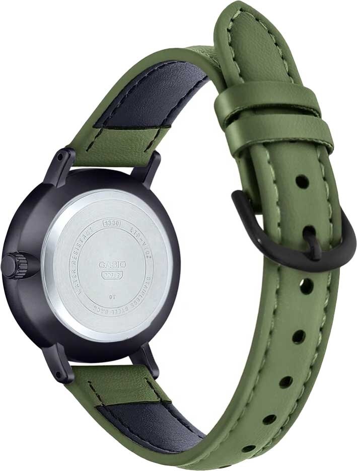 LTP-VT02BL-3A Casio наручные часы кварцевые WR30 (3 атм) женские черный, зеленый минеральное стекло