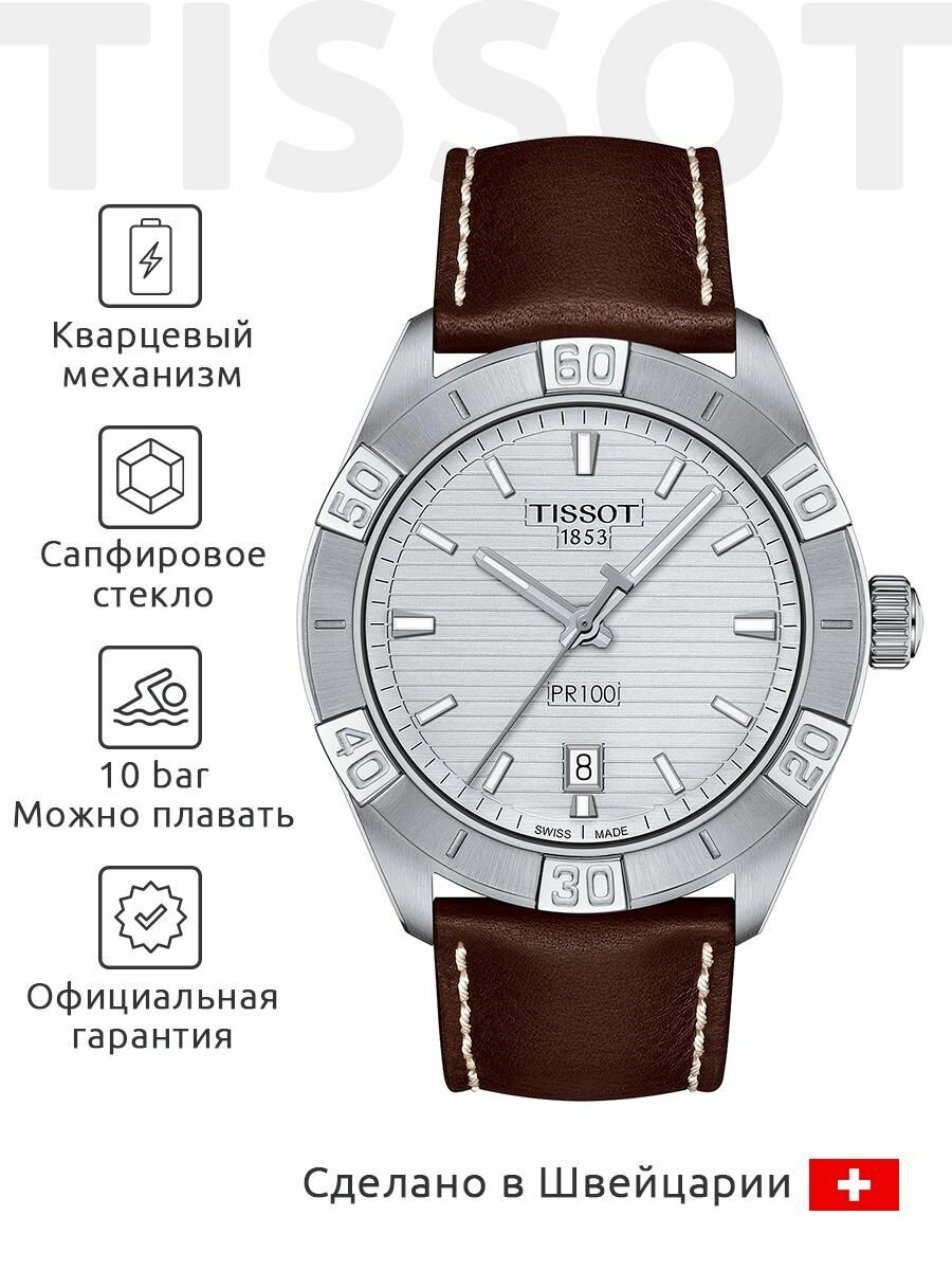 Швейцарские кварцевые часы Tissot PR 100 Sport Gent T101.610.16.031.00 на кожанном браслете, с водозащитой 10 бар и международной гарантией от производителя
