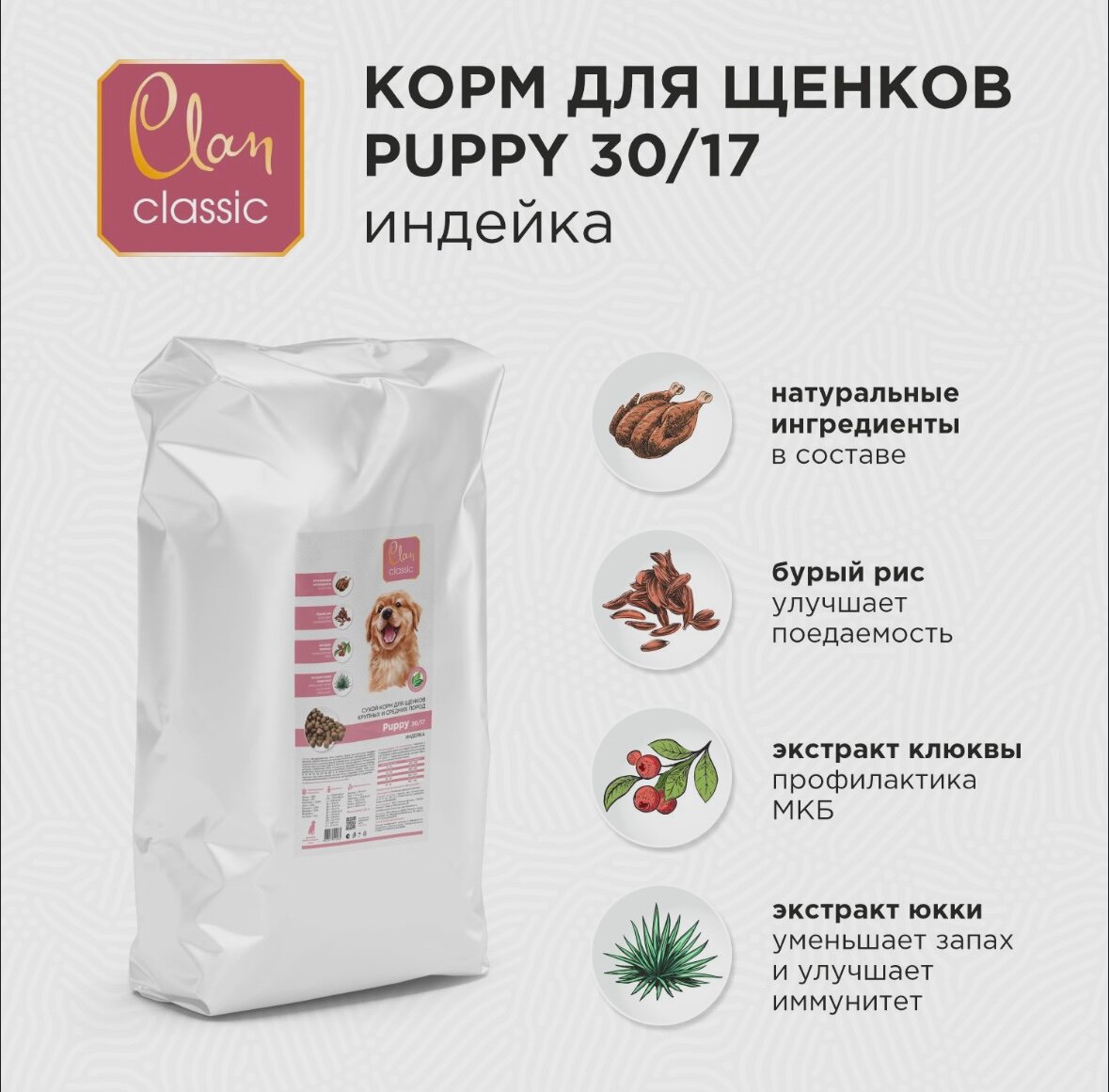 Clan (Клан) CLASSIC Puppy-30/17 для щенков крупных и средних пород, индейка 1,245 кг