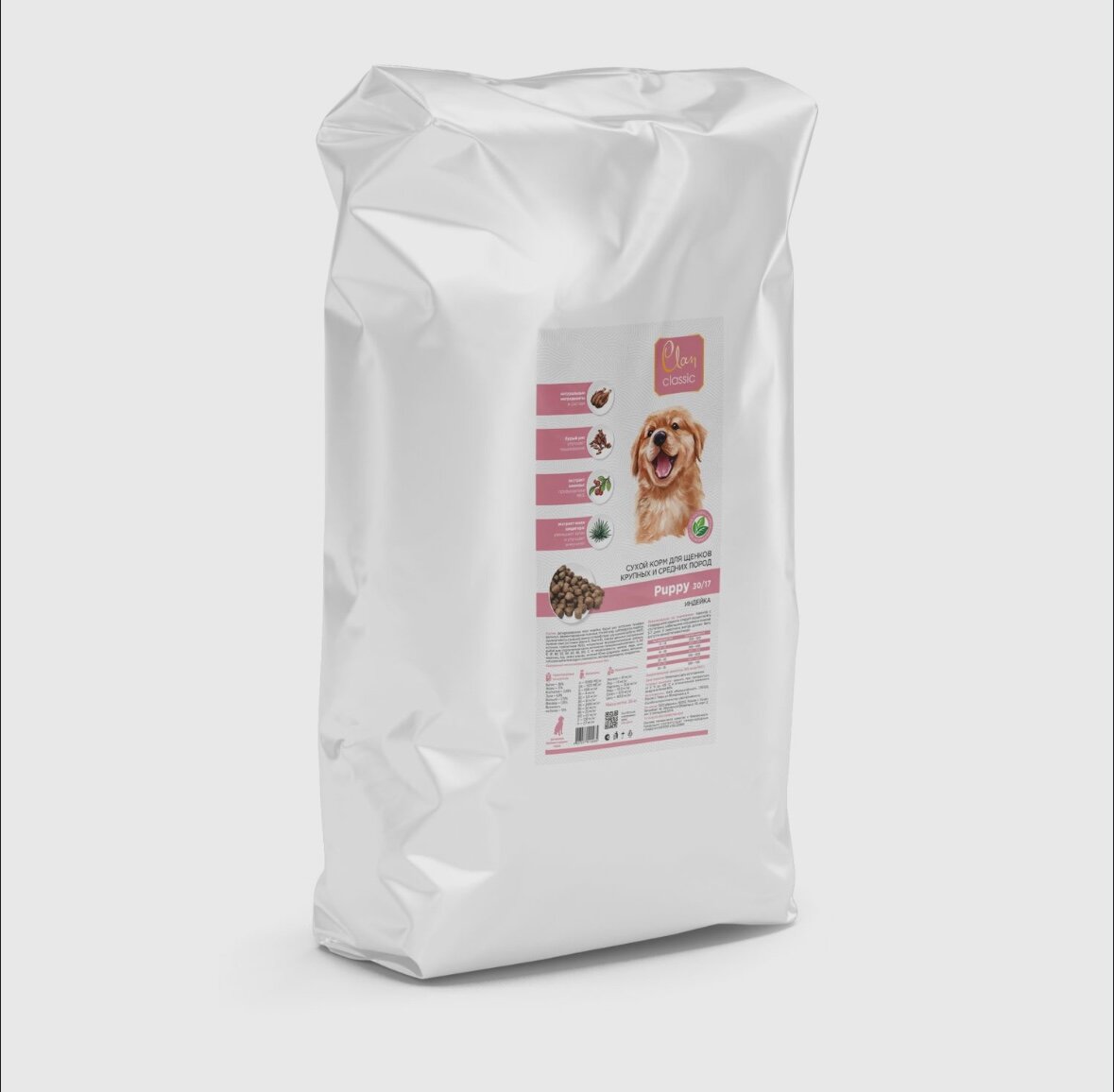 Clan Classic Puppy 30/17 - Сухой корм для щенков средних и крупных пород, с индейкой 130.4.621 10кг