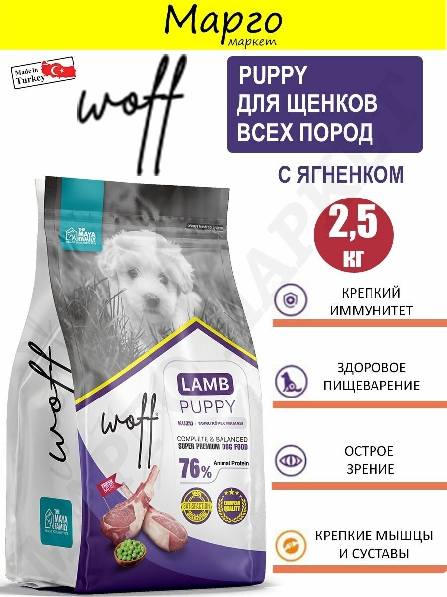 Сухой корм WOFF Puppy для щенков, кормящих и беременных собак всех пород, ягнёнок, 2,5 кг