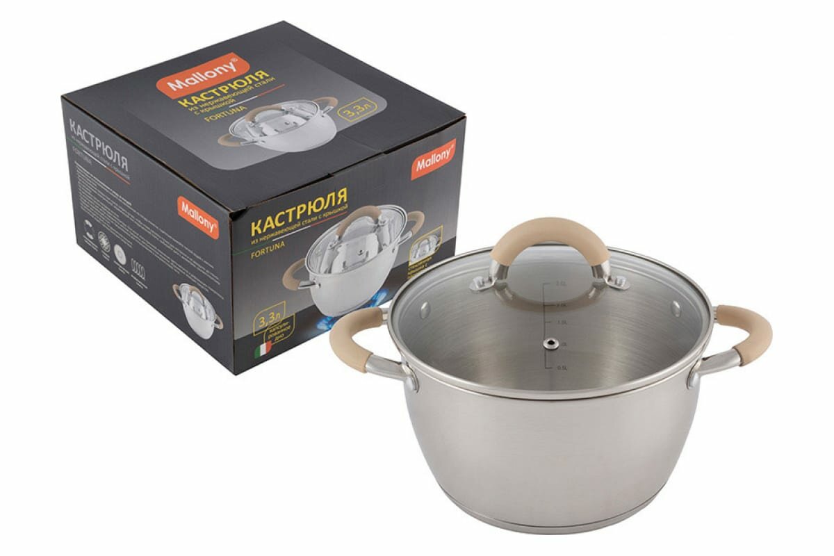 СохранитьКастрюля Fortuna, объем 3,3 л, из нерж стали с крышкой, матовый корпус, ручки с силиконом интересное: