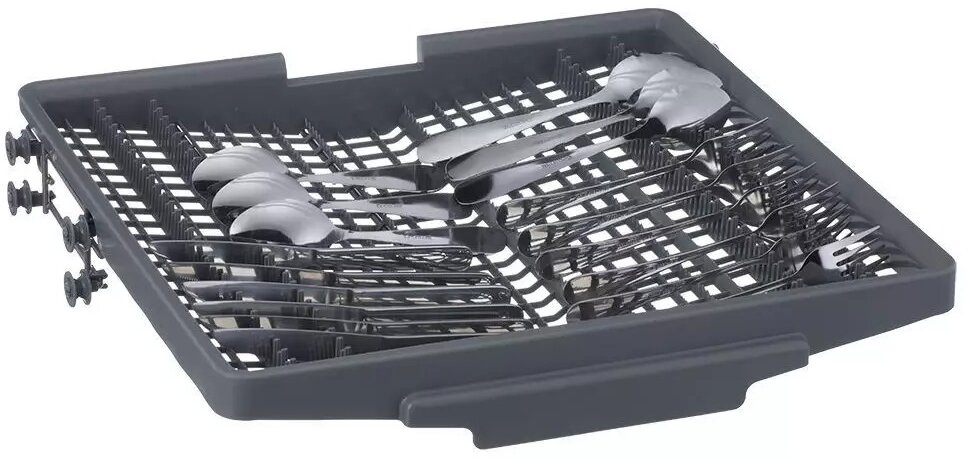 | Минусы: | Не всегда хорошо моет кастрюли, а так же вилки и ложки. Контейнер для ложек и вилок сразу убрали подальше, вилки и ложки вставляем в дырки корзины. Так освобождается место для еще одной кастрюльки |