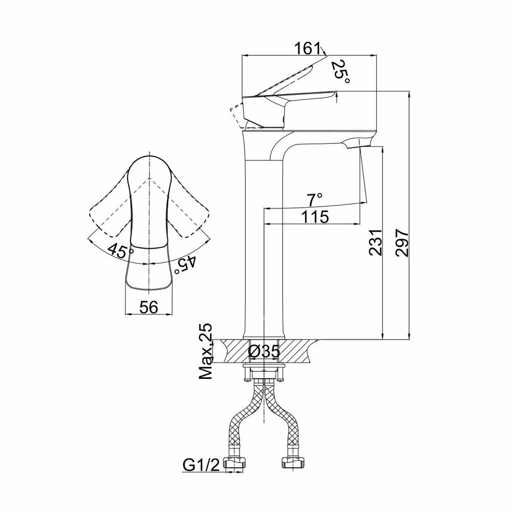 | Угол поворота рукоятки вертик. | 25 градусов |