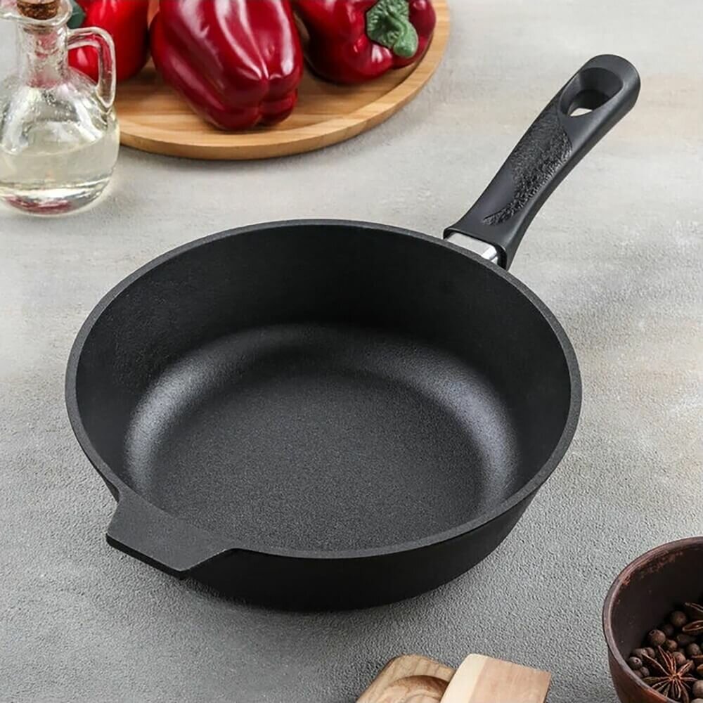 Сковорода Камская Посуда б2060 чугунная 220х60 с бакелитовой ручкой .