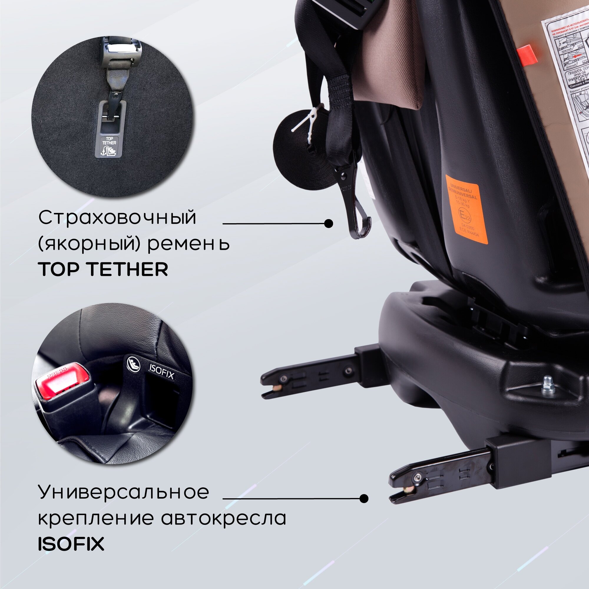 | Особенности установки | фиксатор натяжения штатного ремня / якорный ремень |