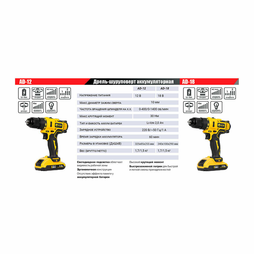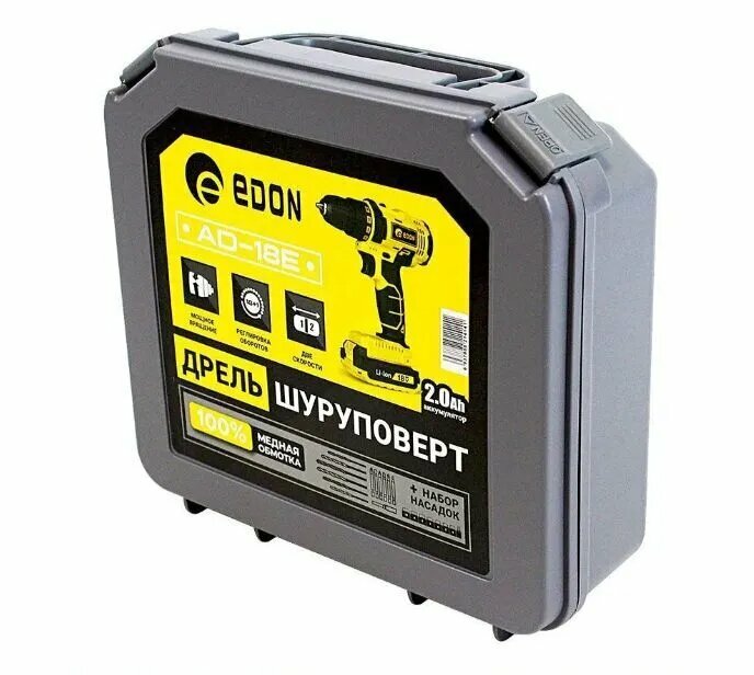Дрель-шуруповёрт Edon AD-18 new (+набор) аккумуляторная