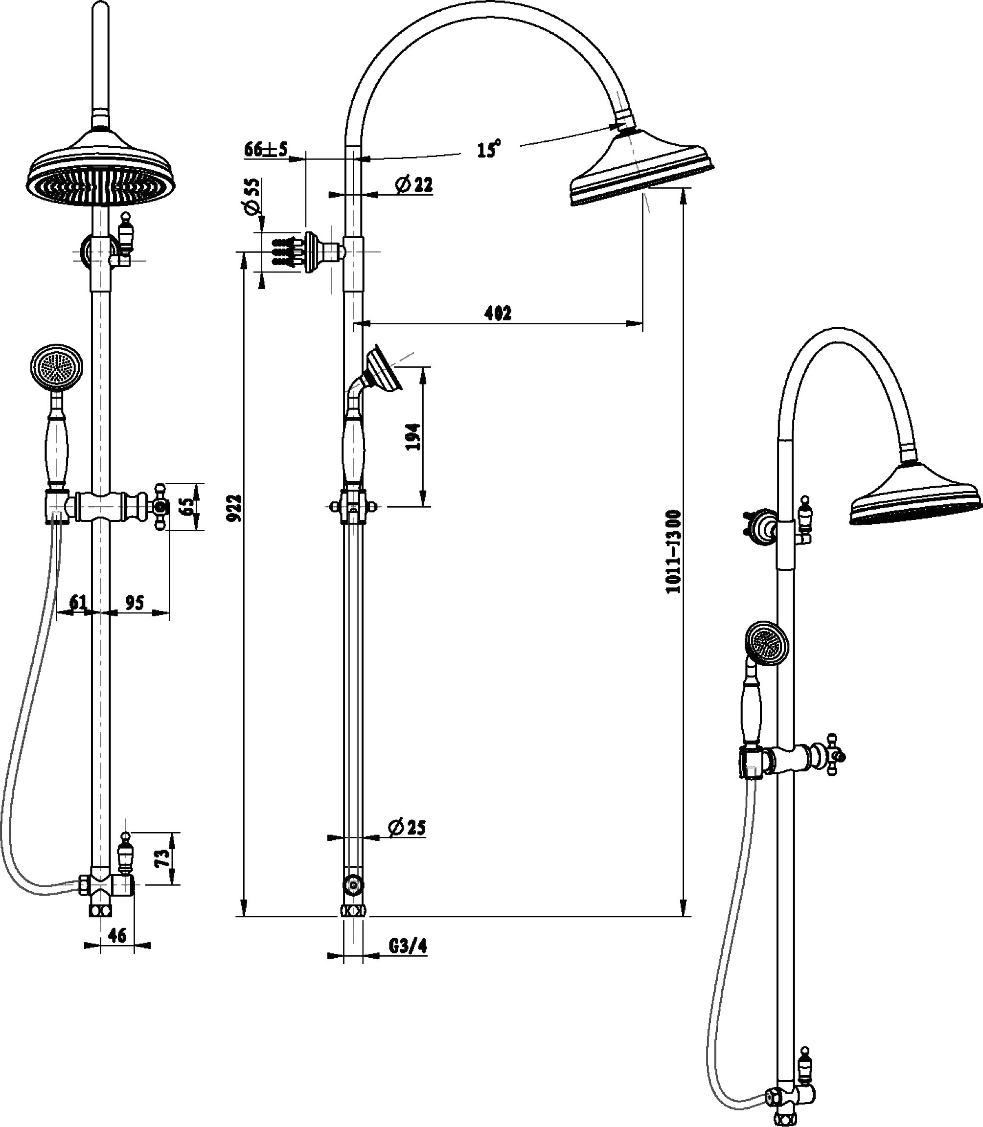 Bronze de Luxe Душевой комплект Bronze de Luxe Scandi 14582BR с внутренней частью, бронза