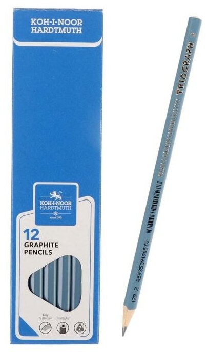 Купить Карандаш чернографитный 2.2 мм Koh-I-Noor "Triograph 2" 1802 B, серый корпус, трёхгранный, L175 мм