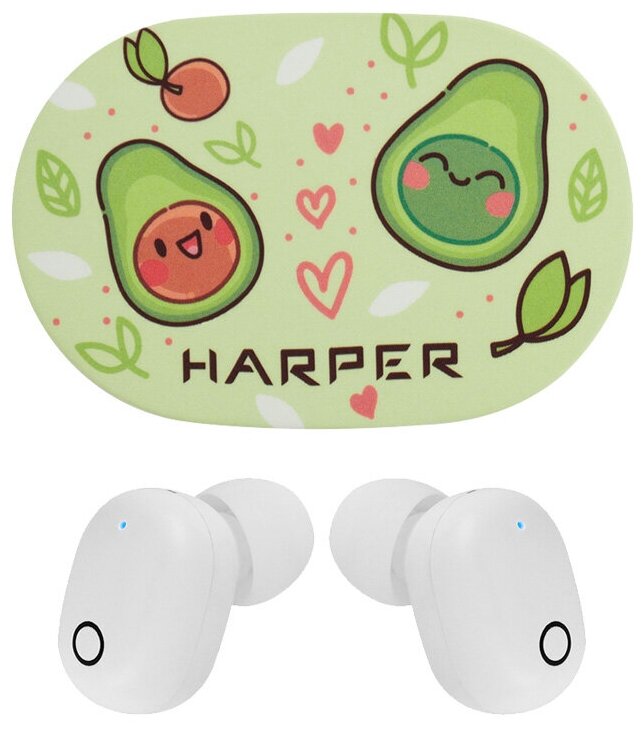 Наушники TWS HARPER HB-533, белый, с принтом на кейсе (avocado) интересное: