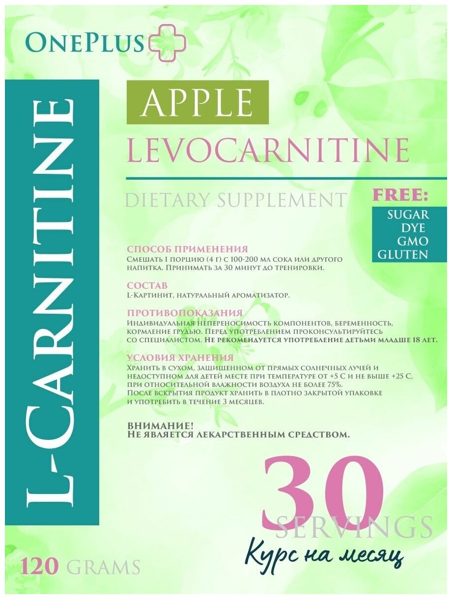 Купить One Plus Жиросжигатель аминокислота L-Carnitine со вкусом Яблоко 120г