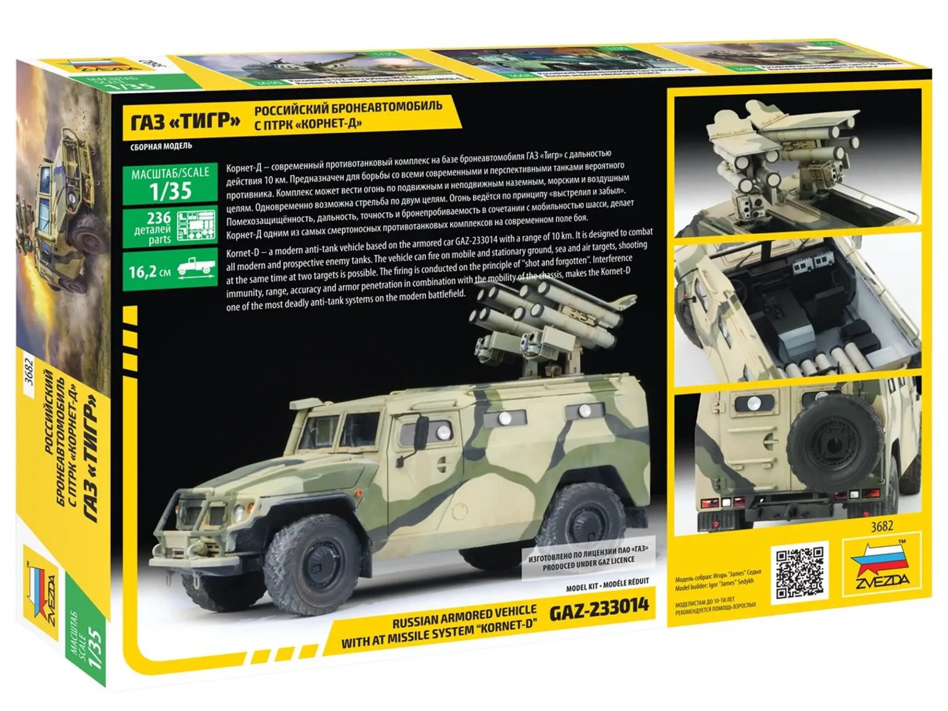 Купить Сборная модель ZVEZDA Российский бронеавтомобиль с птрк "Корнет-Д" ГАЗ "Тигр" (3682) 1:35