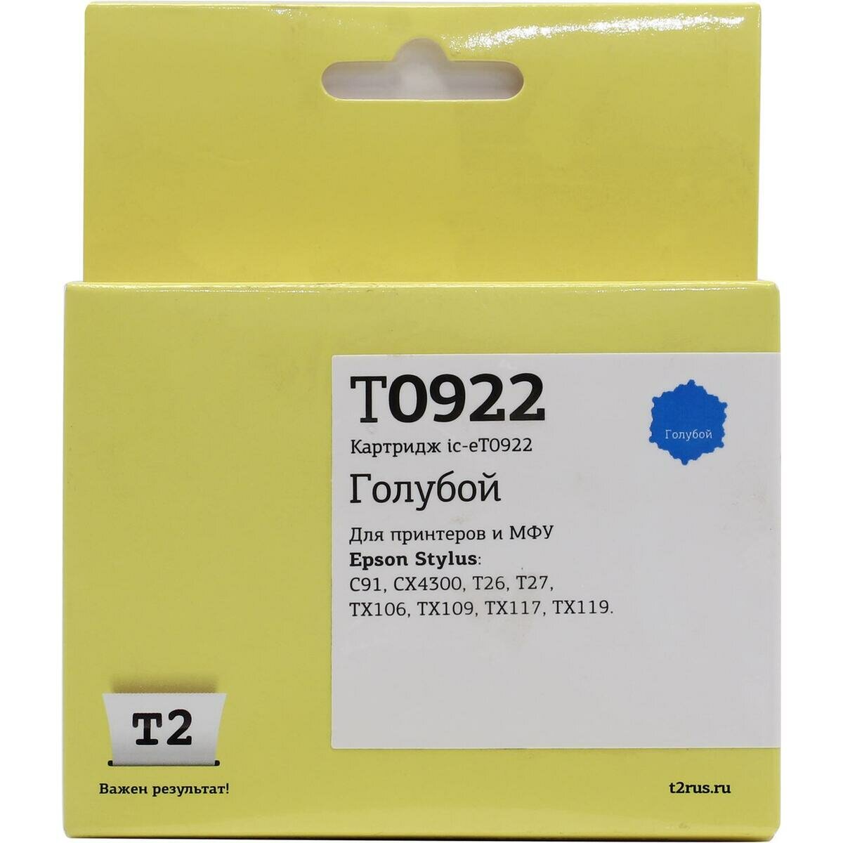 Струйный картридж T2 IC-ET0922 (C13T0922/T1082/T0922/Stylus C91/CX4300/TX106/TX117) для принтеров Epson, голубой
