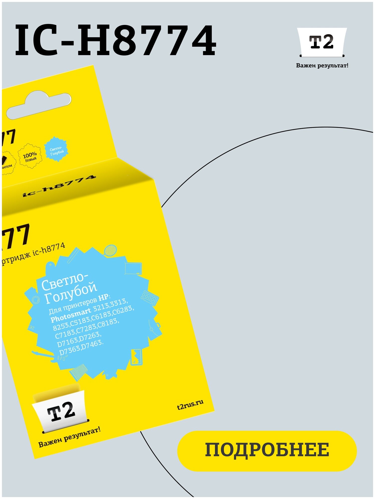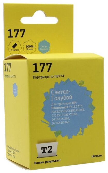 Купить T2 C8774HE Картридж 177 для HP Photosmart 3213 8253 C5183 C6183 D7163 D7463, светло-голубой, С чипом, 350 стр.