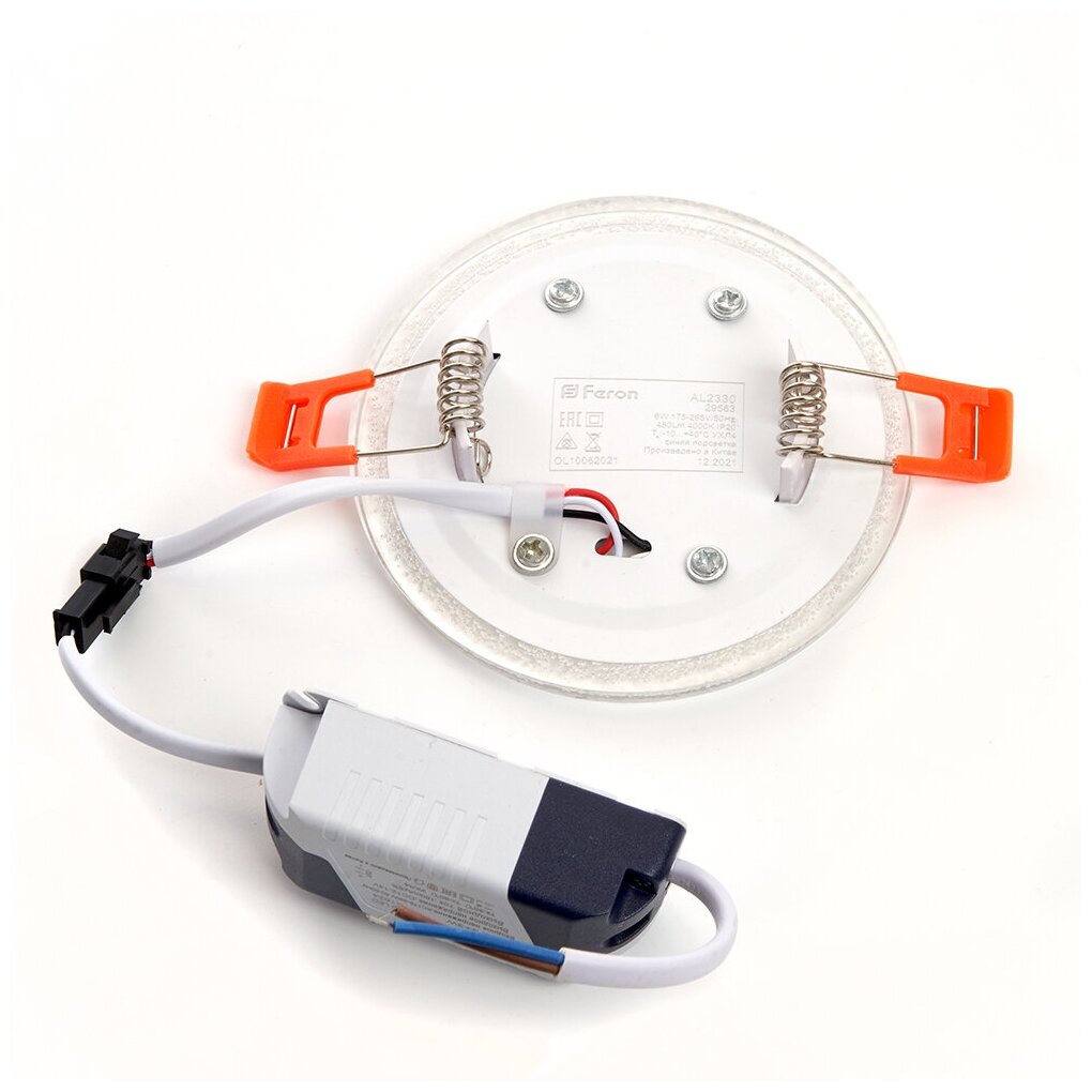 Светодиодный светильник Feron AL2330 встраиваемый 6W 4000K с синей подсветкой, белый