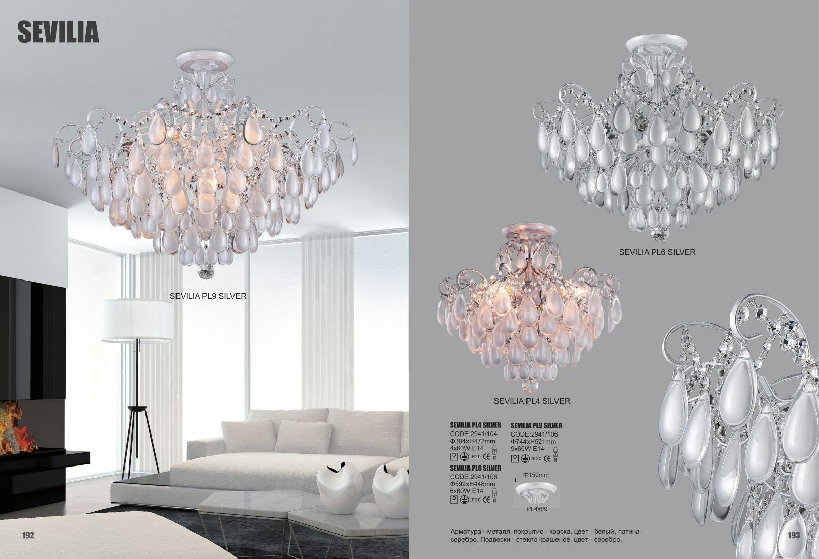 Светильник потолочный Crystal Lux SEVILIA PL4 SILVER интересное: