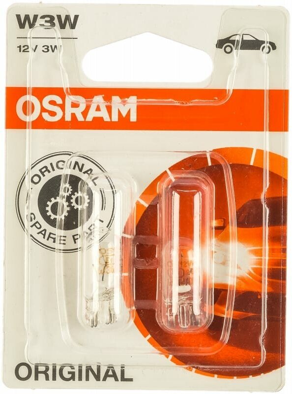 Автомобильные лампы OSRAM Автолампа W3W 12V OSRAM 2821-02B W2,1*9,5d (блистер 2 шт)