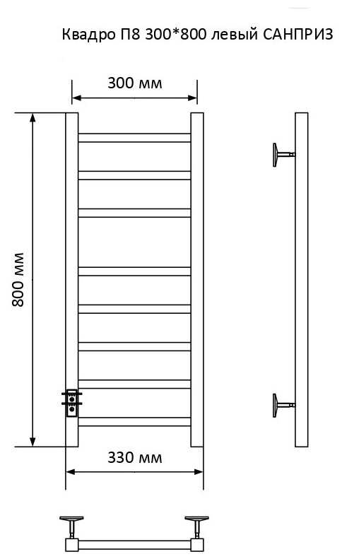 Электрический полотенцесушитель Санприз Квадро П8 300х800 с греющим кабелем, левый, хром 11046 интересное: