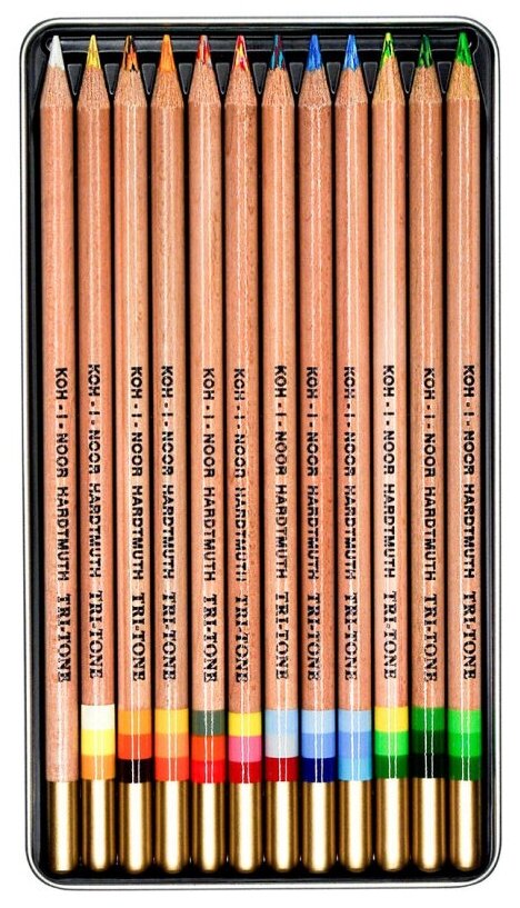 Купить Карандаш Koh-I-Noor Карандаши цв. Tri-Tone 3442 кругл. дерево натур. цвет корпуса 12цв. мет.кор.