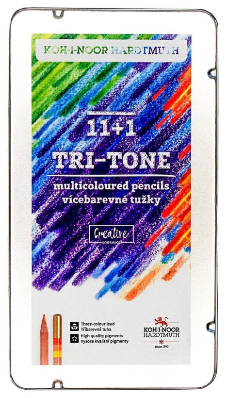 Карандаши много цвета Koh-I-Noor TRI-TONE 3442 12 штук, металлический пенал