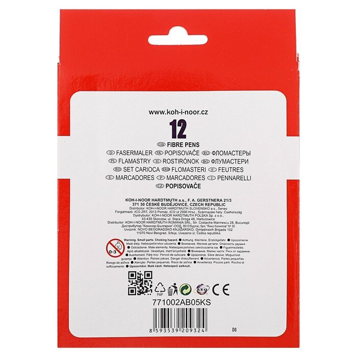 Фломастеры KOH-I-NOOR "Рыбки", 12 цветов, смываемые, трехгранные (771002AB05KS)