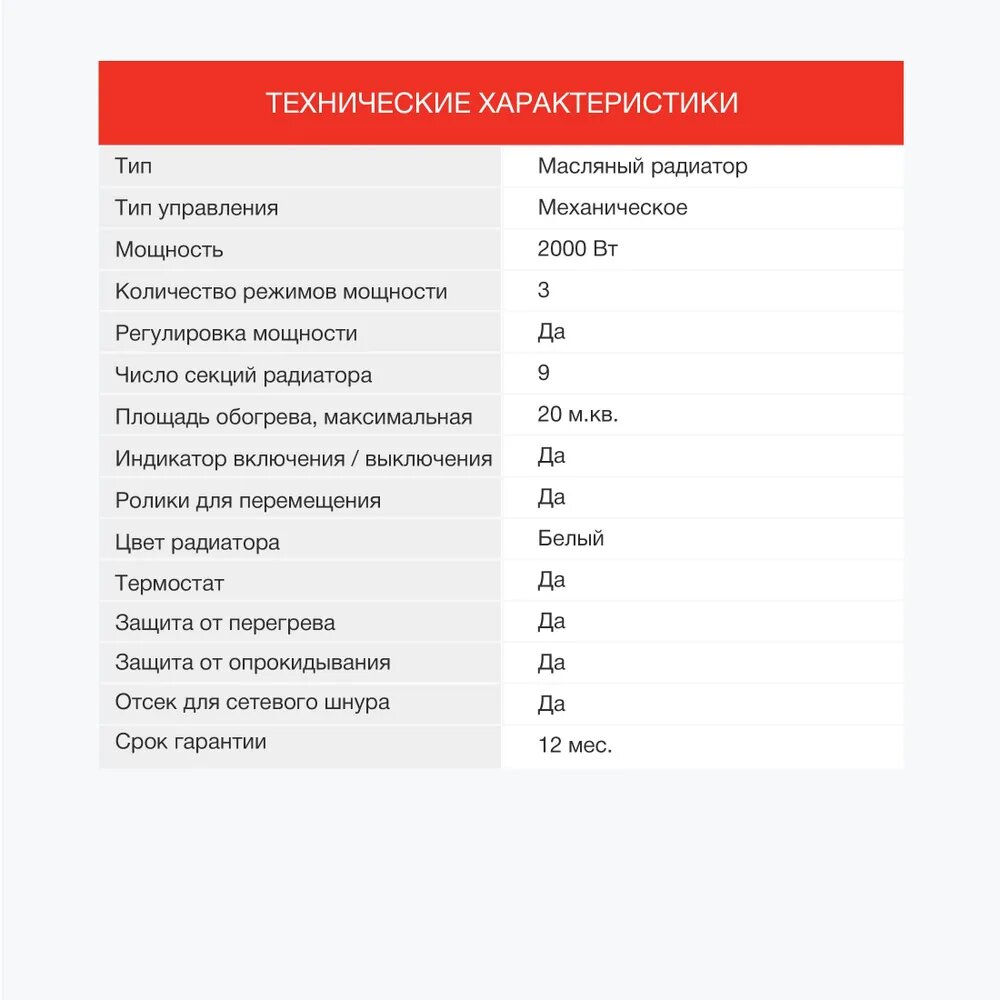 | Тип обогревателя | масляный радиатор |