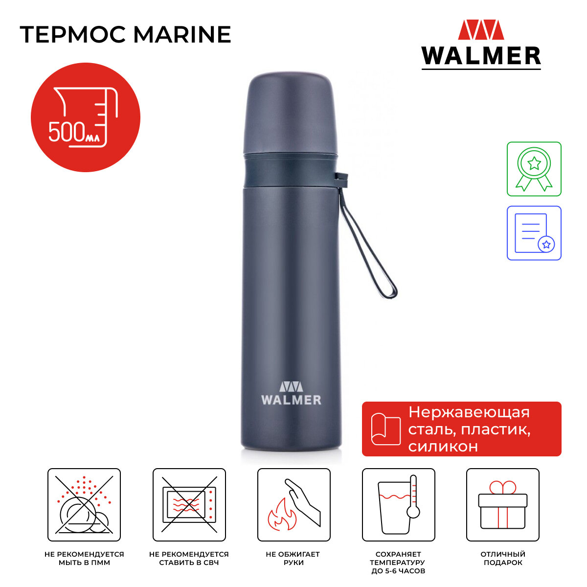 Термос Walmer Marine 500 мл, цвет синий интересное: