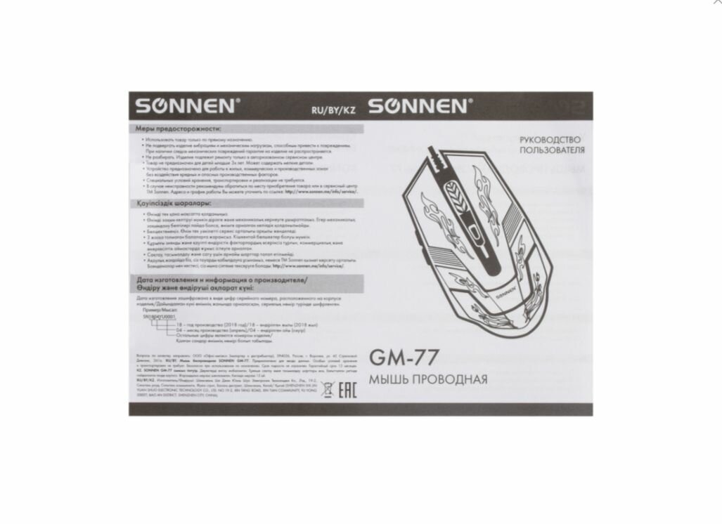 Мышь проводная игровая SONNEN GM-77, USB, 2400 dpi, 6 кнопок, оптическая, LED-подсветка, черная интересное: