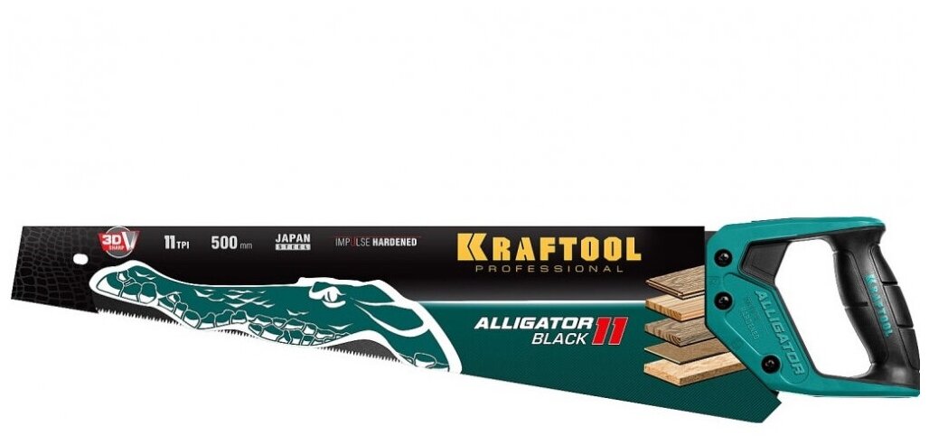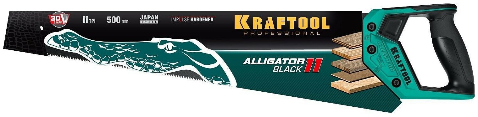 Ножовка для точного реза Kraftool "Alligator BLACK", 500 мм, 11 TPI 3D зуб, 15205-50
