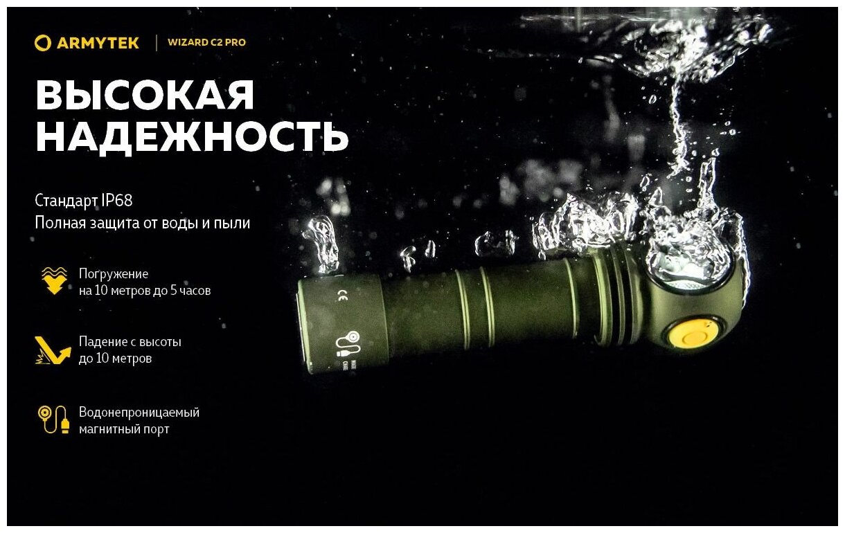 Фонарь ARMYTEK Wizard C2 Pro v4 Magnet USB+ABM01+18650, теплый свет
