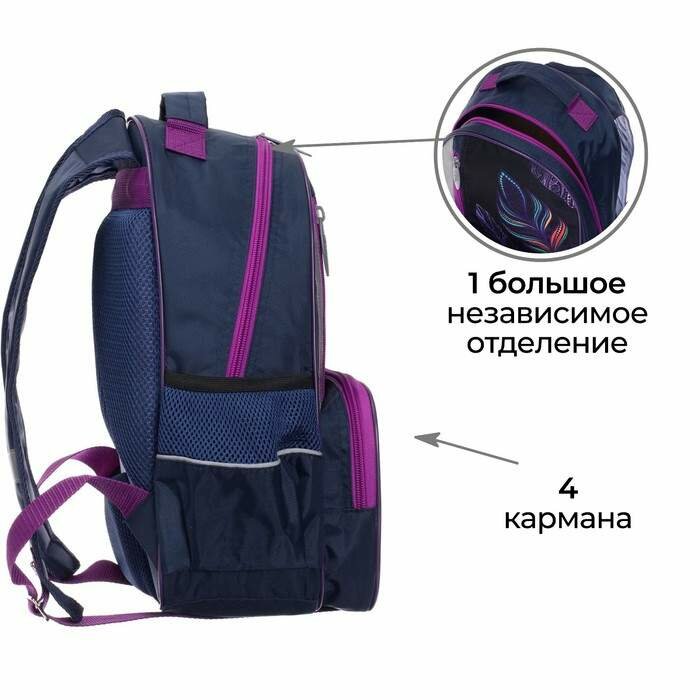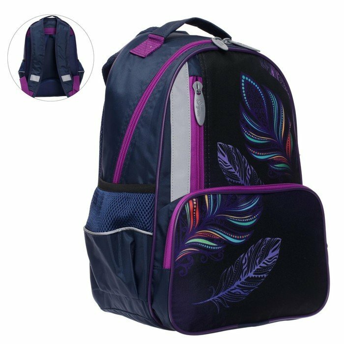 Рюкзак школьный, Calligrata, 37 х 26 х 13 см, эргономичная спинка, Пёрышко