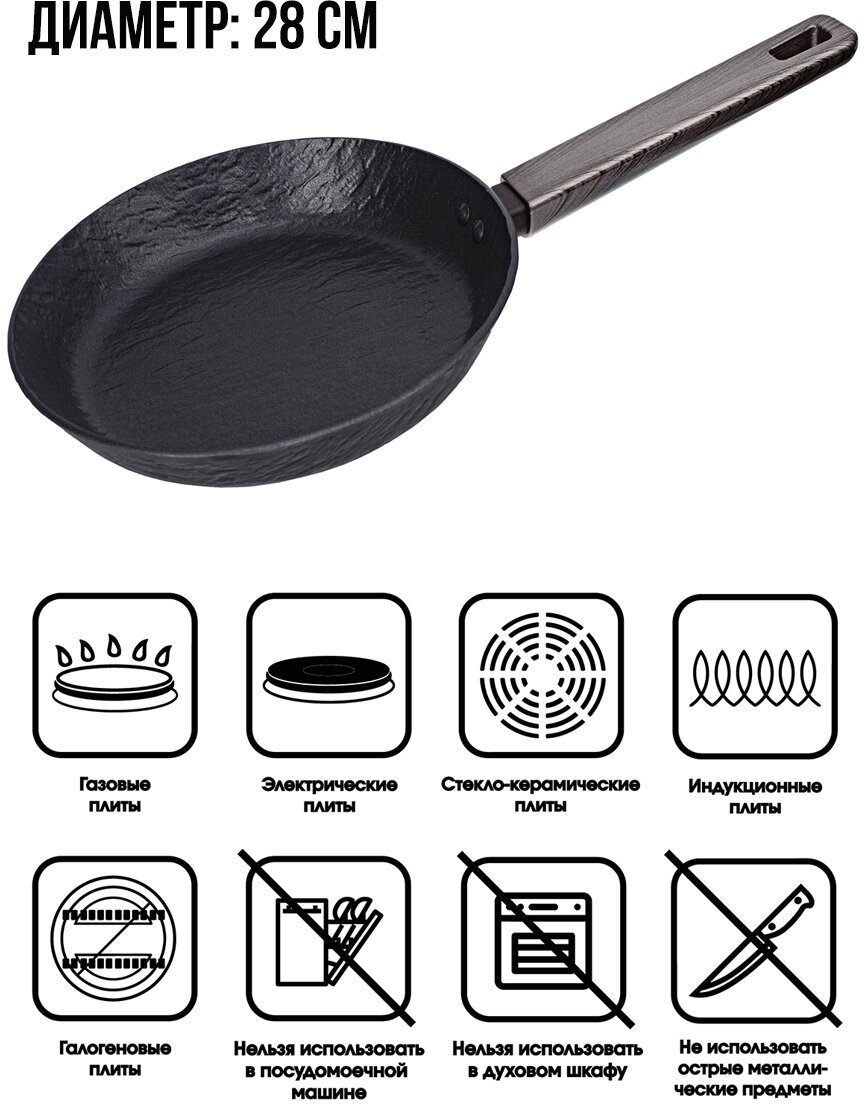 Купить Сковорода с антипригарным покрытием 28 см PROFFI ROCK для индукционной плиты из литого алюминия