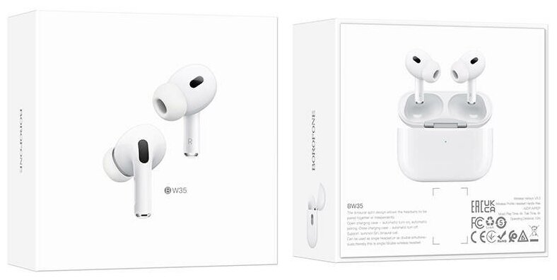 Беспроводные Bluetooth наушники/ Borofone BW35/BW04/ С зарядным кейсом/ Подходят для iPhone