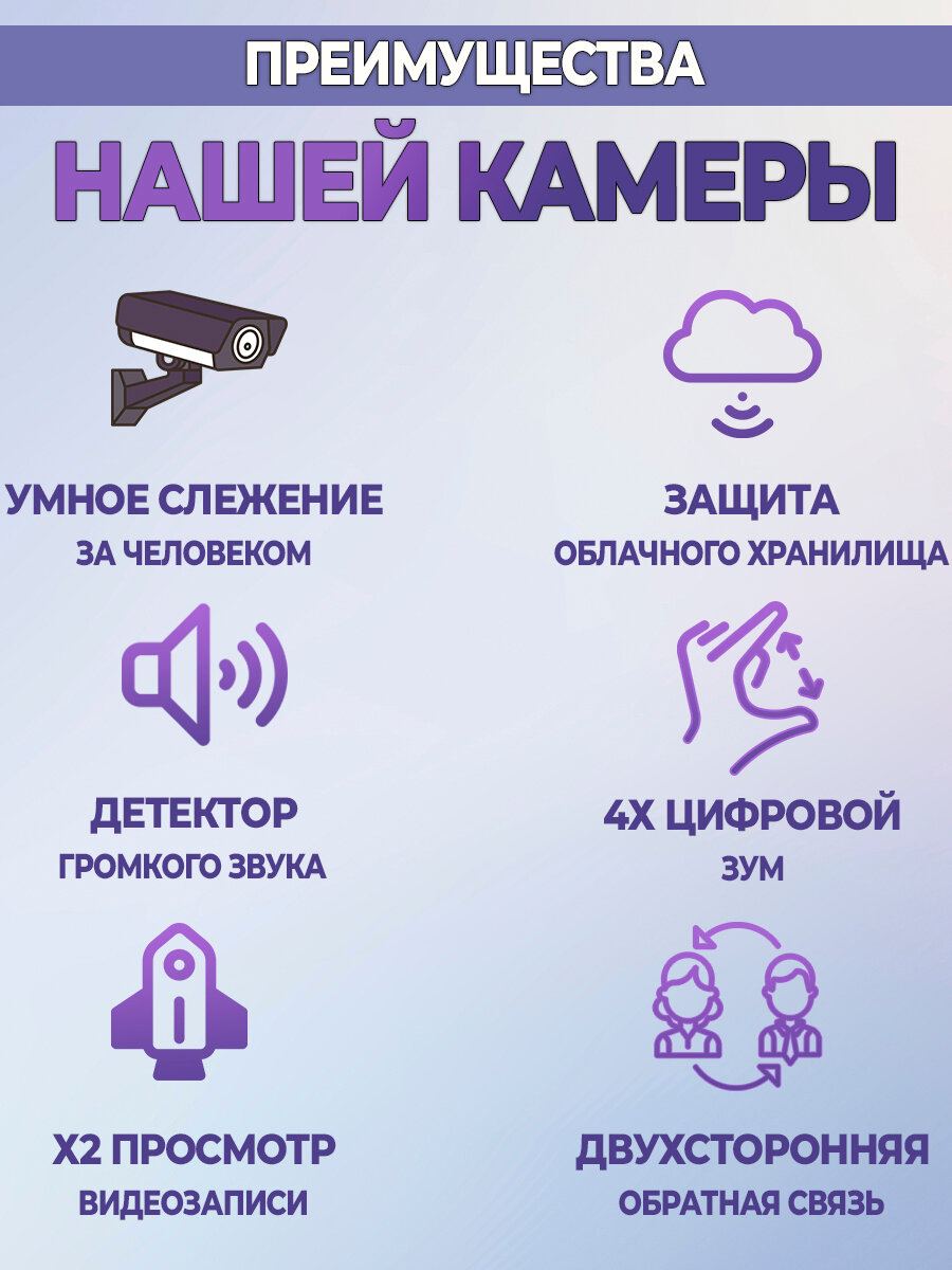 IP-камера видеонаблюдения Wi-Fi для дома с обзором 360 градусов белая