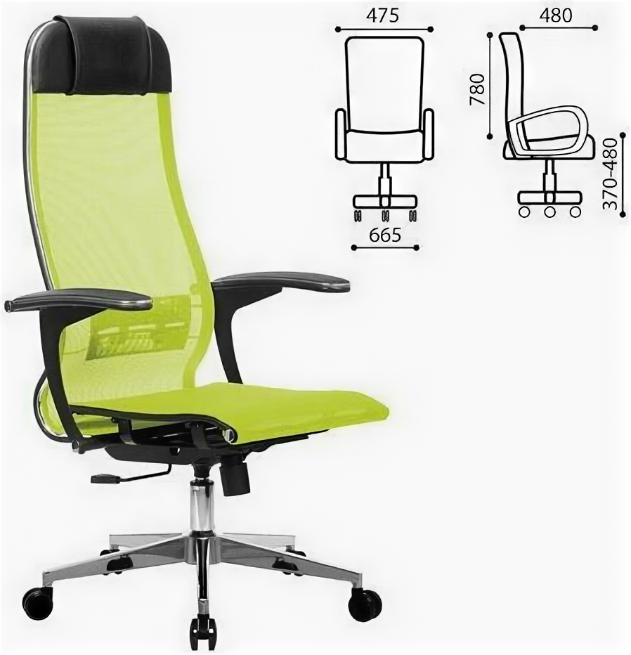 Кресло офисное метта «К-4-Т» хромпрочная сеткасиденье и спинка регулируемыесветло-зеленое