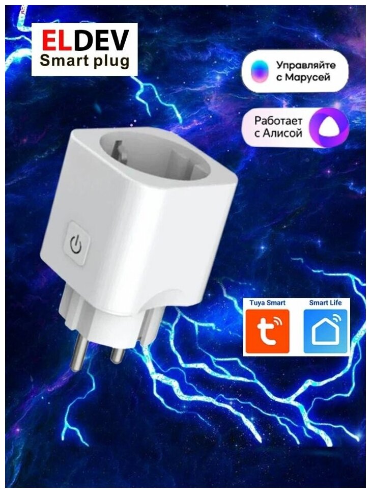 Умная розетка WI-FI 16А ELDEV (Яндекс Алиса, Google Home, Маруся) протокол Tuya, работает без шлюза, Smart Plug