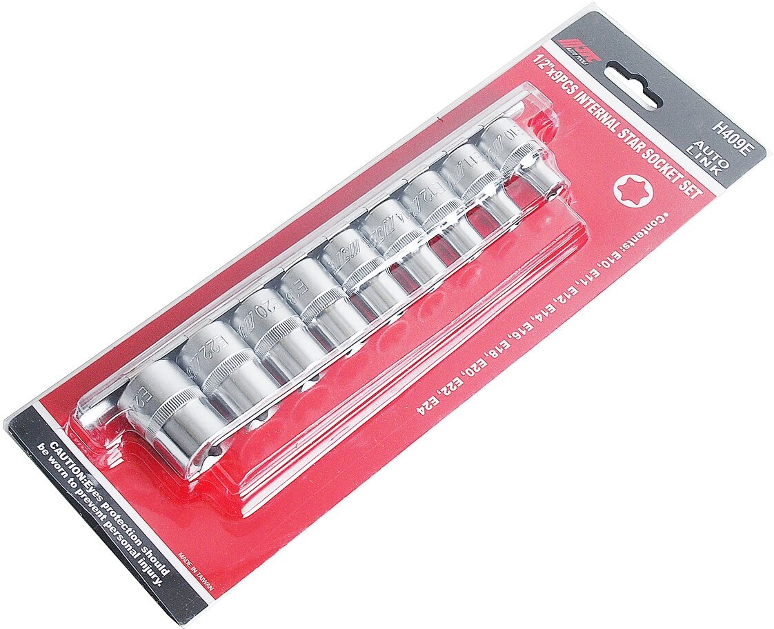 Набор торцевых головок TORX (1/2", E10-E24) 9 предметов JTC H409E