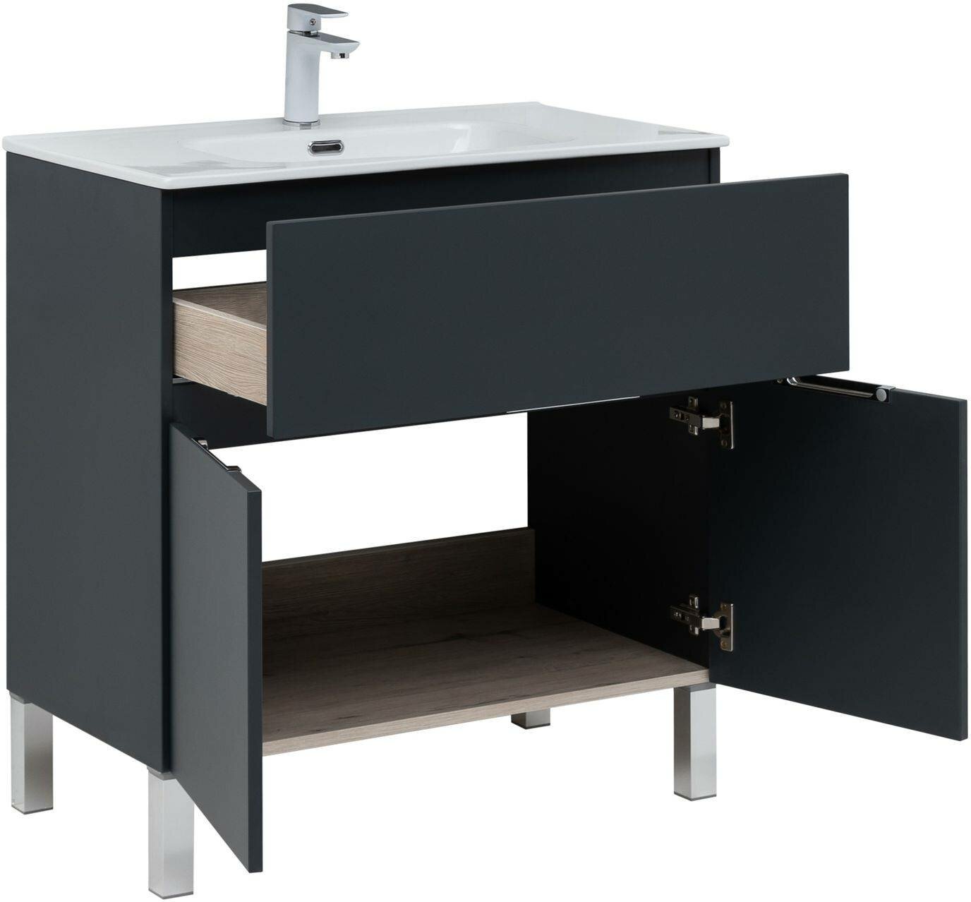 Тумба под раковину Aquanet Алвита New 80 1 ящик, 2 дверцы, антрацит