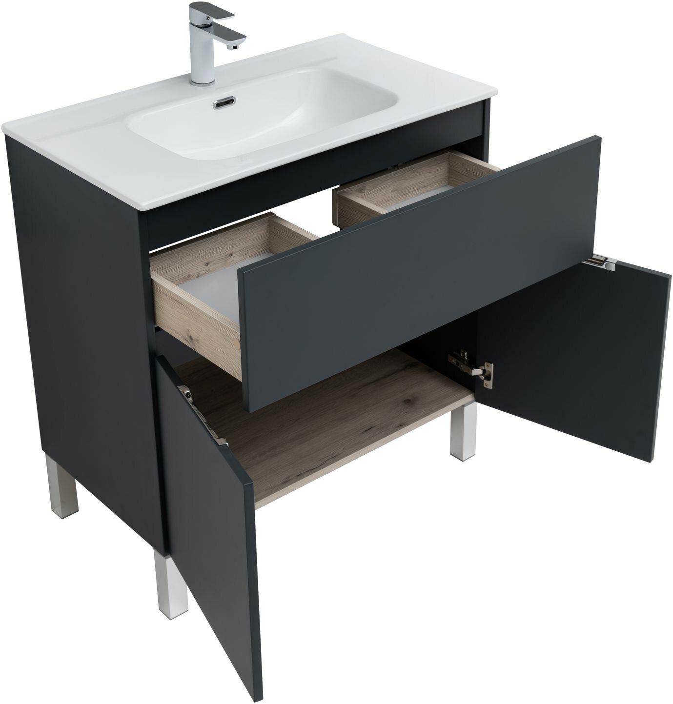 Тумба Aquanet Алвита New 80 1 ящик, 2 дверцы, антрацит интересное: