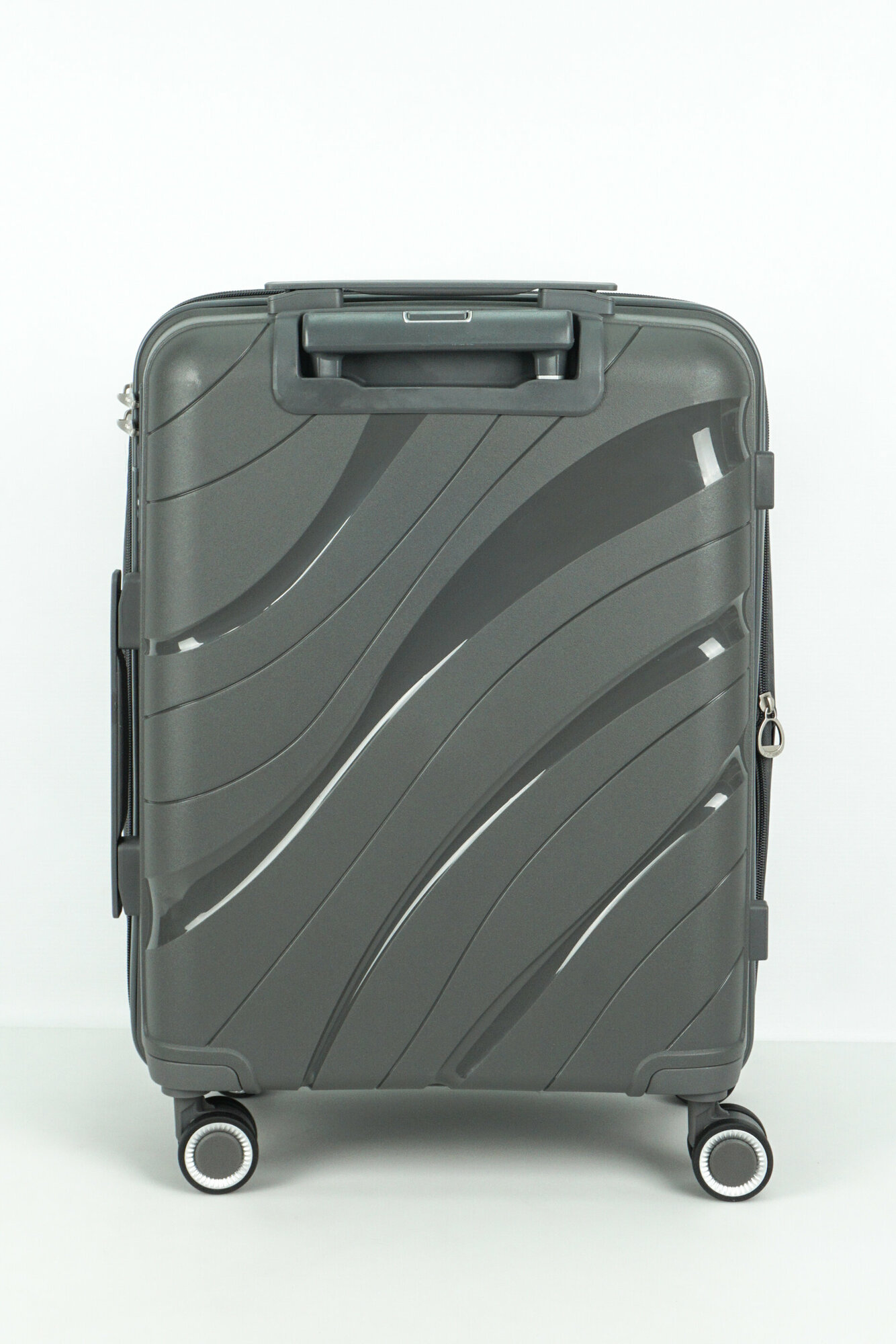 Купить Чемодан Sweetbags маленький (ручная кладь) из полипропилена с расширением на 4-х колесах с TSA замком (волны) темно-серый S