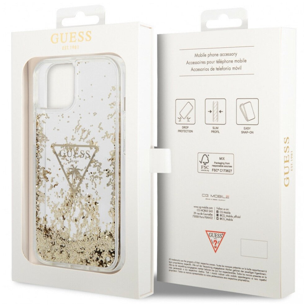 Чехол CG Mobile Guess Liquid Glitter Triangle logo Translucent Hard для iPhone 14, цвет Прозрачный (GUHCP14SLFCTPT)